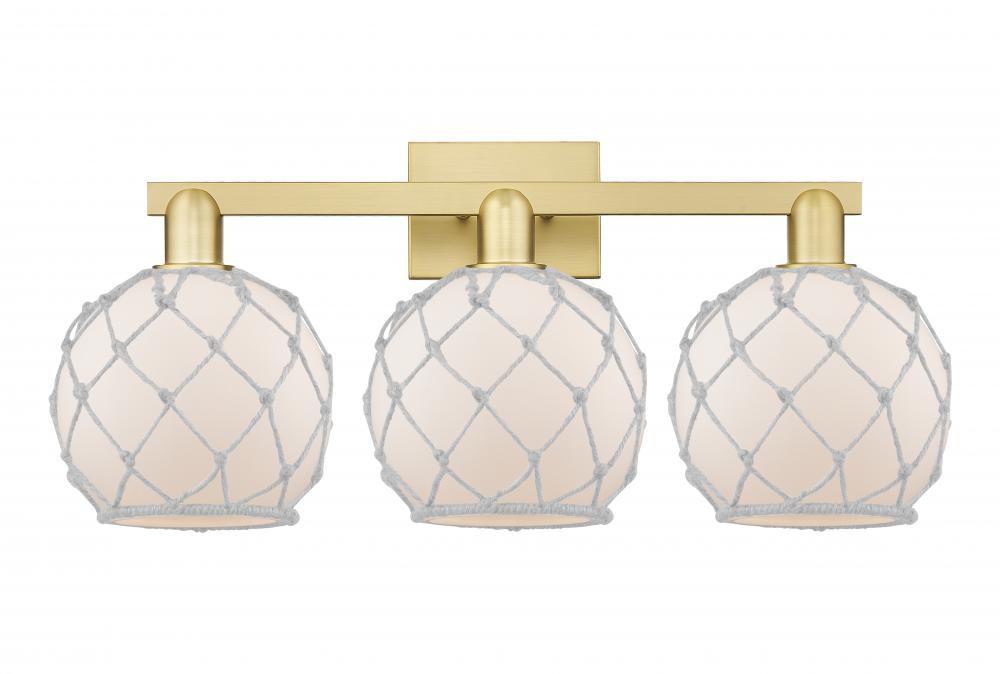Farmhouse Rope - 3 Light - 27 inch - Satin Gold - White Glass with White Rope shade - Bath Vanity Light