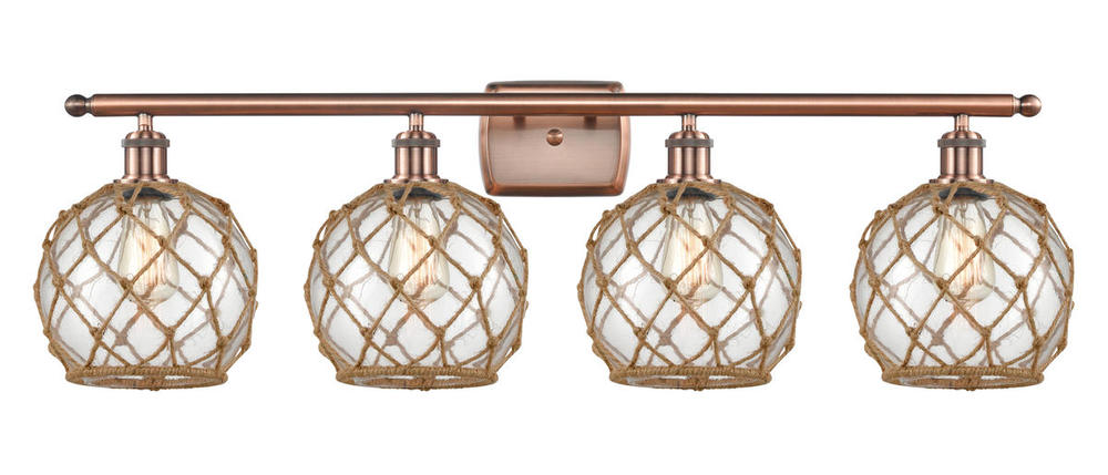 Farmhouse Rope - 4 Light - 38 inch - Antique Copper - Clear Glass with Brown Rope Shade - Bath Vanity Light