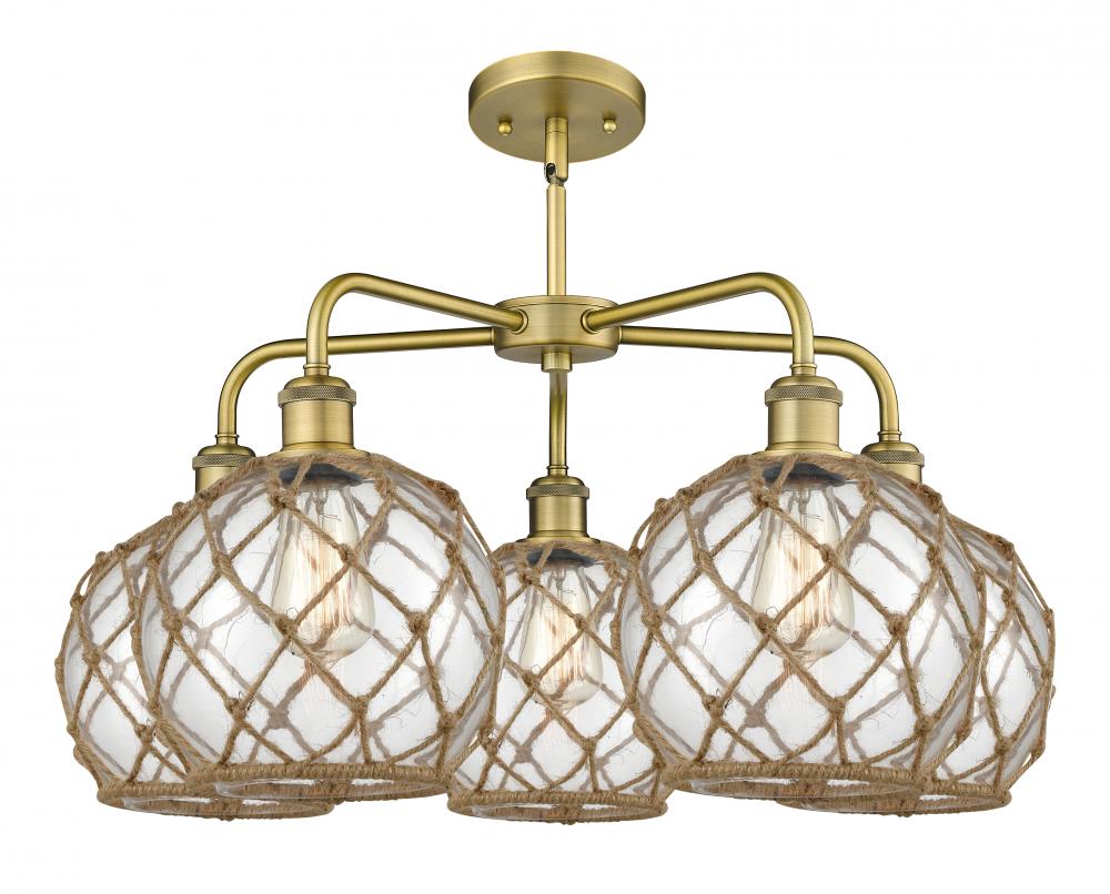 Farmhouse Rope - 5 Light - 27 inch - Brushed Brass - Clear Glass with Brown Rope shade - Stem hung - Chandelier