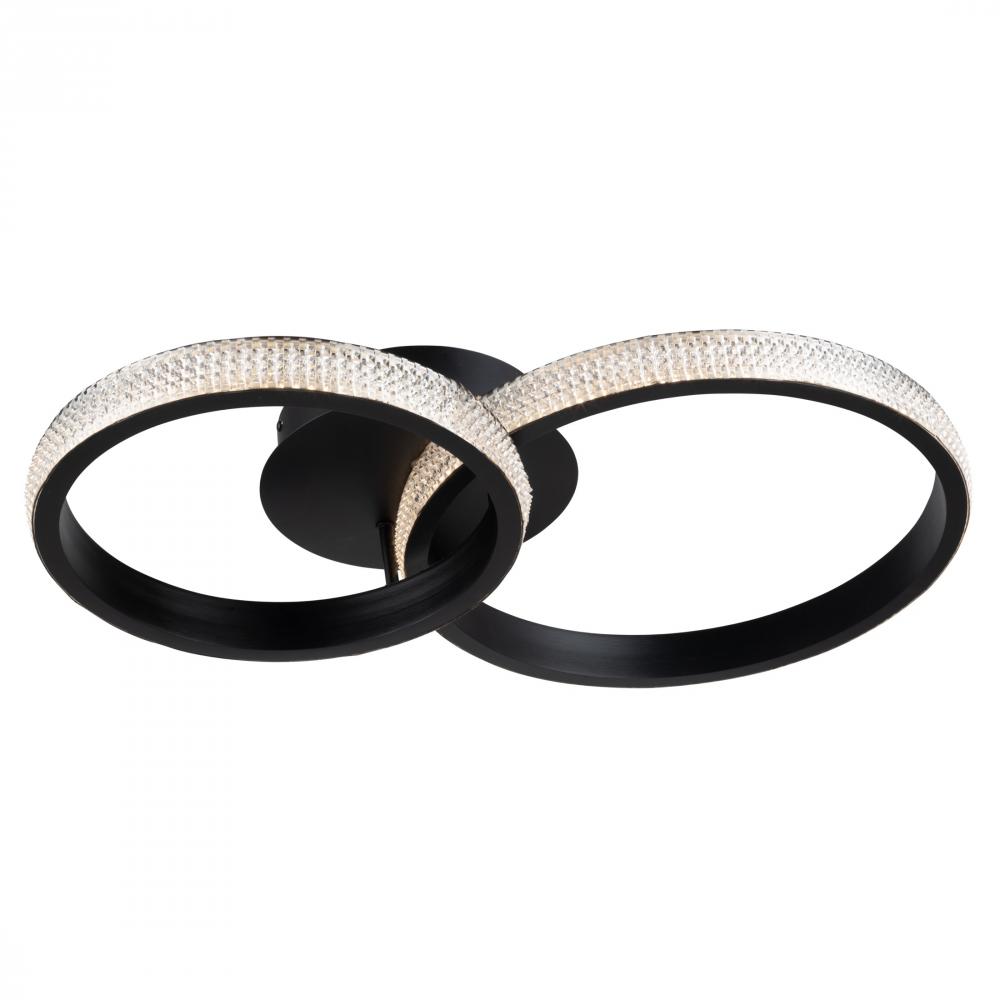 The Nova Collection two ring canopy sparkles from edge to edge. For a unique look each ring has a different diameter. The interior of the ring and canopy are finished in a luxurious matte black. This product is illuminated by bright energy efficient LED which are dimmable.