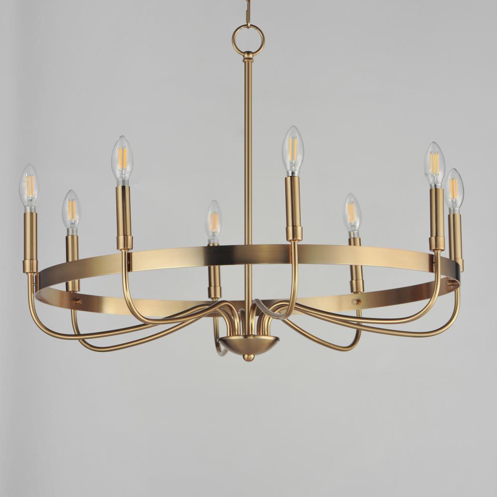 Elegant simple chandelier forms in your choice of Matte Black, Satin Nickel, or Heritage Brass. The timeless and transitional appeal of this series pairs well with a wide range of aesthetics.