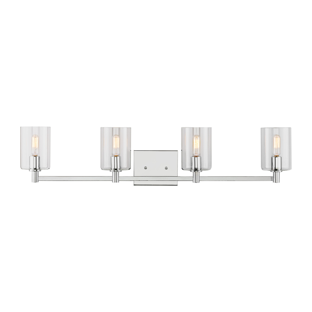 The Fullton four light vanity fixture in Chrome is sleek, contemporary, and uber minimalistic. Visual interest is created using a mix of rectangular and round frames, a subtle design detail. Although this collection is contemporary, it can be mixed in with variety of collections with ease.