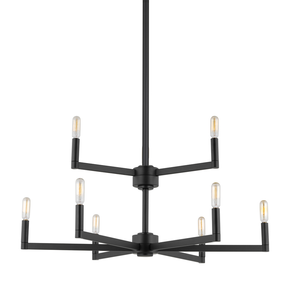The Fullton nine light multi-tier chandelier in Midnight Black is sleek, contemporary, and uber minimalistic. Visual interest is created using a mix of rectangular and round frames, a subtle design detail. Although this collection is contemporary, it can be mixed in with variety of collections with ease.