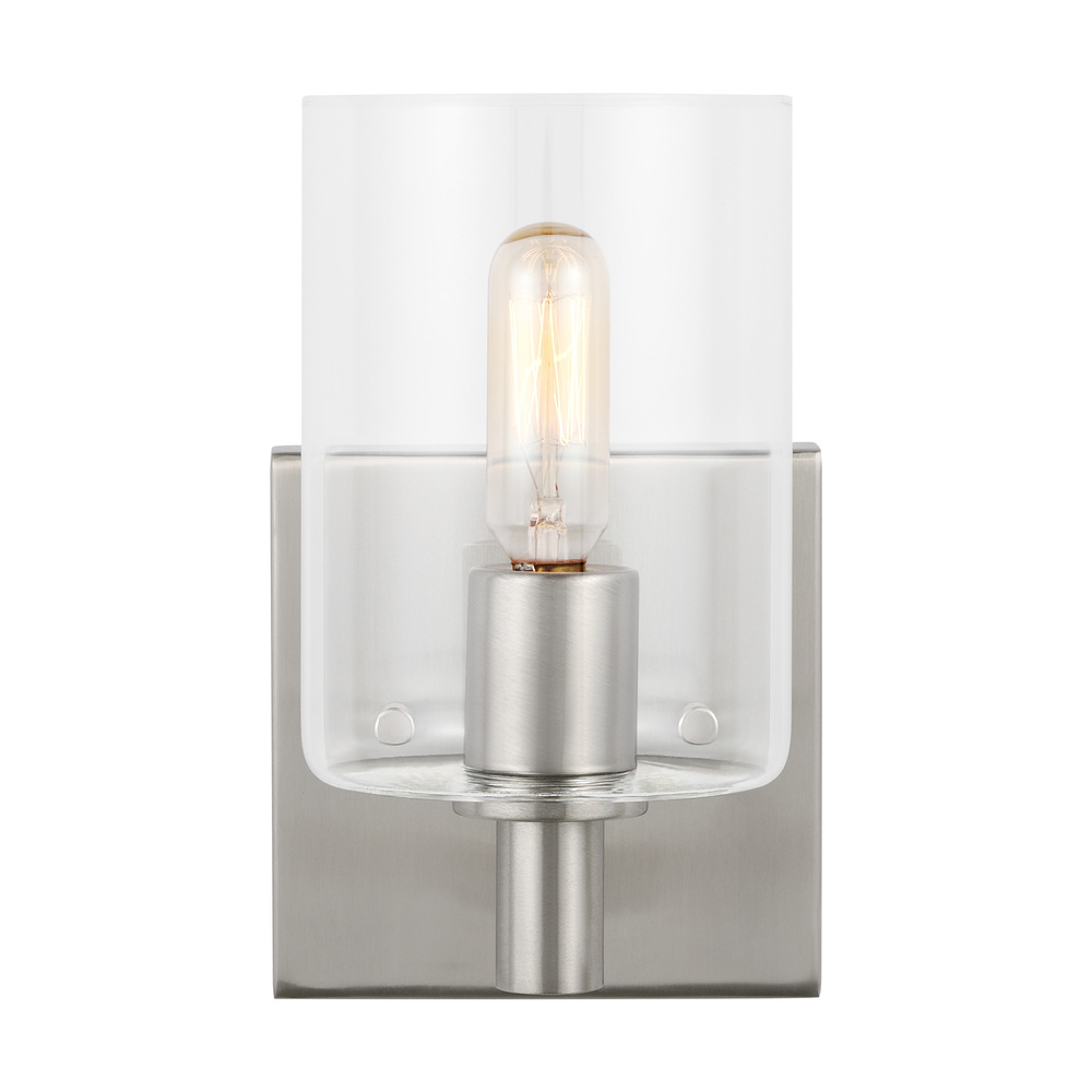 The Fullton one light wall sconce in brushed nickel silver is sleek, contemporary, and uber minimalistic. Visual interest is created using a mix of rectangular and round frames, a subtle design detail. Although this collection is contemporary, it can be mixed in with variety of collections with ease.