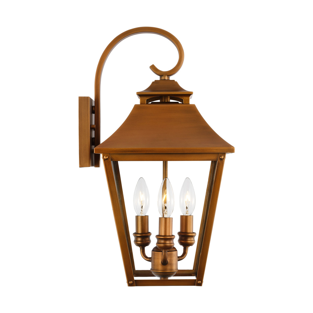 The Galena outdoor series by Sean Lavin is a Europe-inspired classic lantern. Simple and refined, Galena features a gently curved hook detail atop a vented, square-off roofline and candle tubes floating within the tapered Clear glass shades. Galena is a warm, welcoming silhouette offered in a Natural Copper, Sable or Textured Black finish.