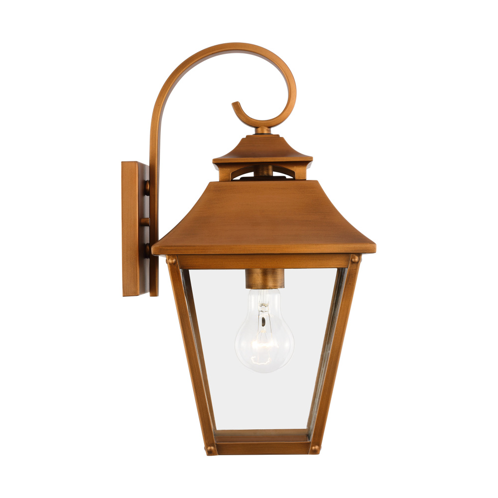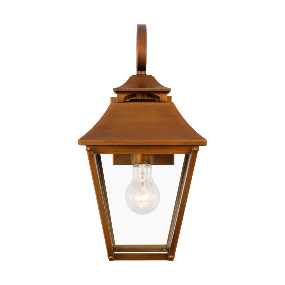The Galena outdoor series by Sean Lavin is a Europe-inspired classic lantern. Simple and refined, Galena features a gently curved hook detail atop a vented, square-off roofline and candle tubes floating within the tapered Clear glass shades. Galena is a warm, welcoming silhouette offered in a Natural Copper, Sable or Textured Black finish.