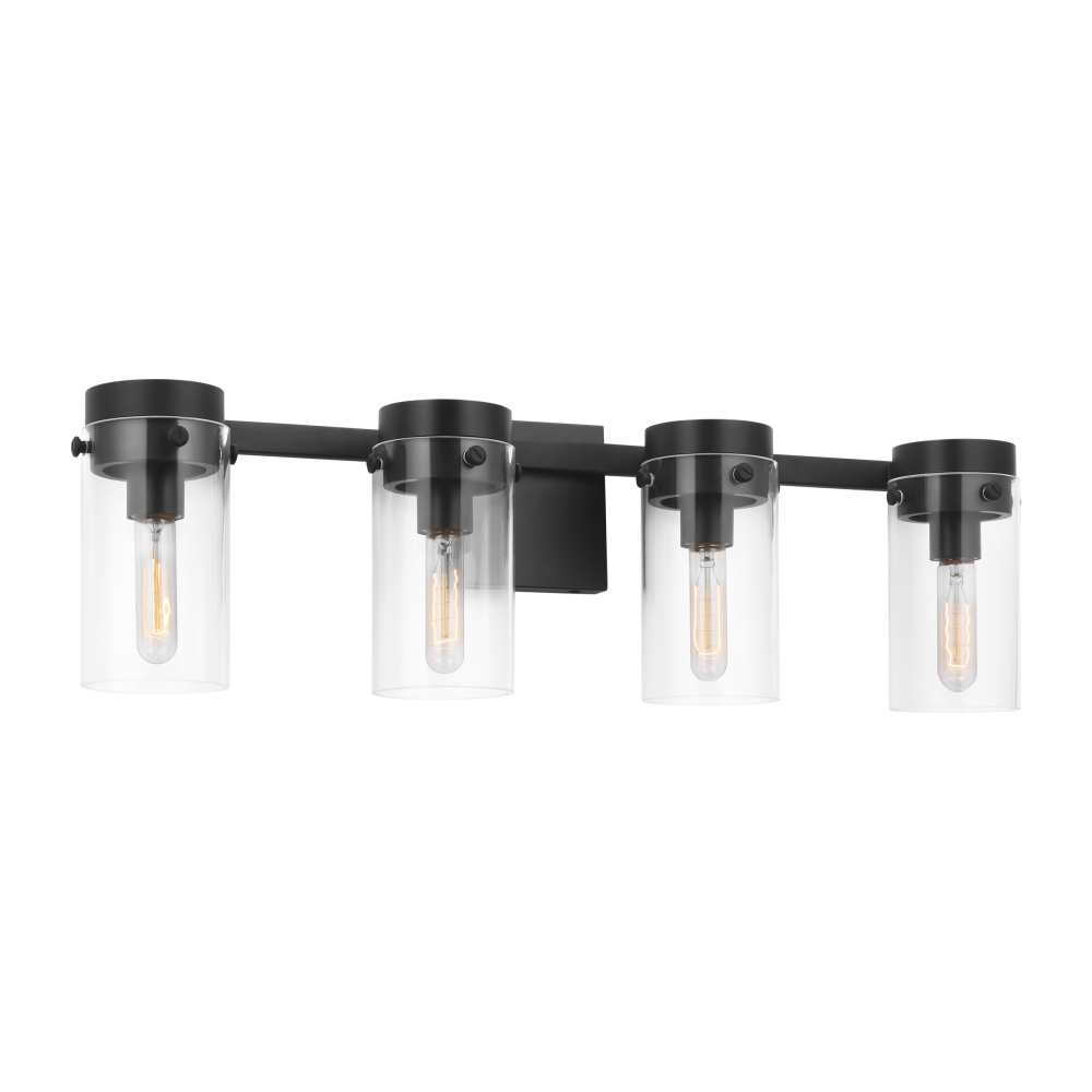 Garrett from C&M by Chapman & Myers for Generation Lighting features cylindrical Clear Extruded Glass shades paired with three rich finishes. This striking blend of metal and glass, sophisticated in its simplicity, is both industrial and glamorous. It is sure to inspire a higher level of style wherever it is placed.