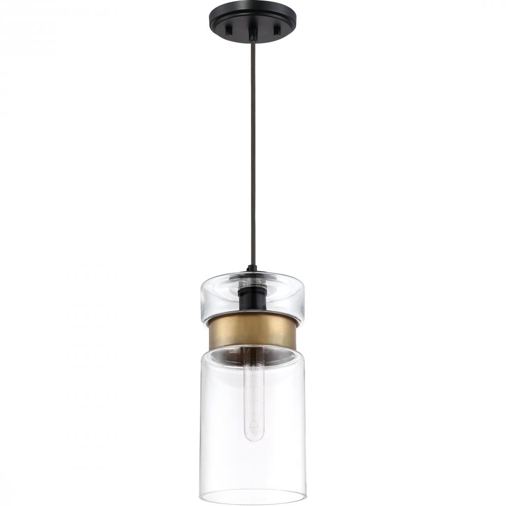 With a slim silhouette and minimal details the Gathering Mini Pendant wows in all the right places. The clear glass is cylindrical and to add a pop of color it is cinched with a broad band of painted brass. This cable-hung fixture can be adjusted to suit