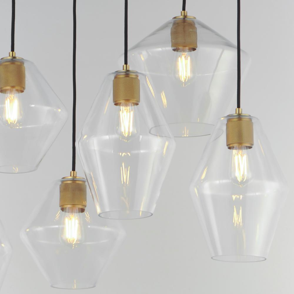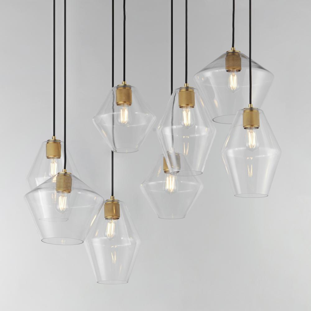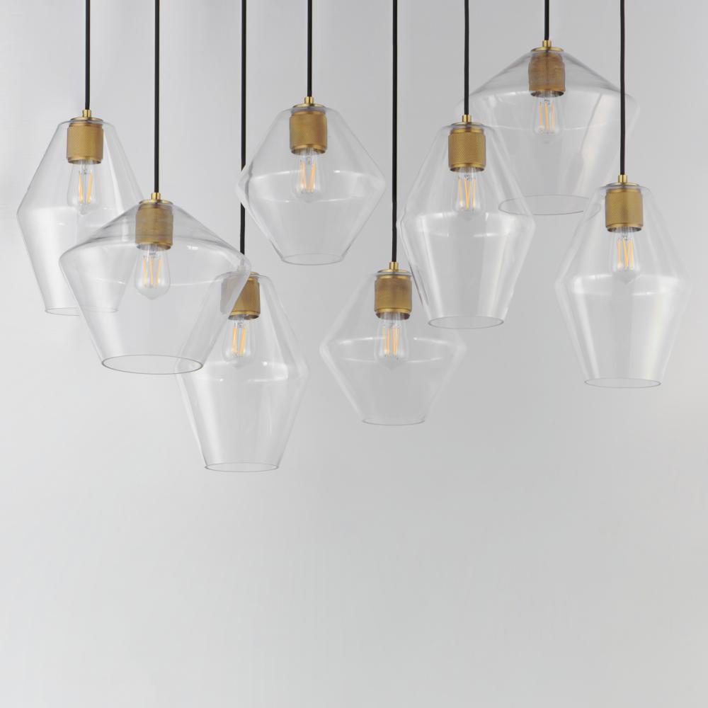 Crystalline clarity meets modern structure in the Geode collection. Inspired by the faceted symmetry of natural mineral formations, each clear glass shade is cut in an angular form that plays with light and shadow. The bold, geometric silhouette feels effo