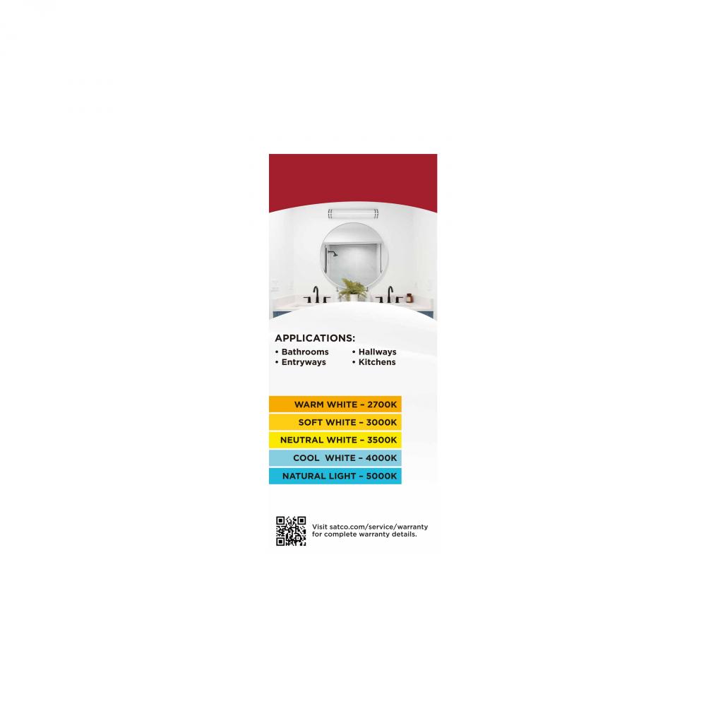 The SATCO NUVO Glamour and Crispo LED collections offer sleek, sophisticated lighting with 5 CCT selectable technology (2700K–5000K) and 90 CRI illumination. The Crispo Collection, available in White, includes 25-inch and 49-inch vanity fixtures and