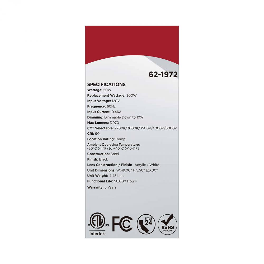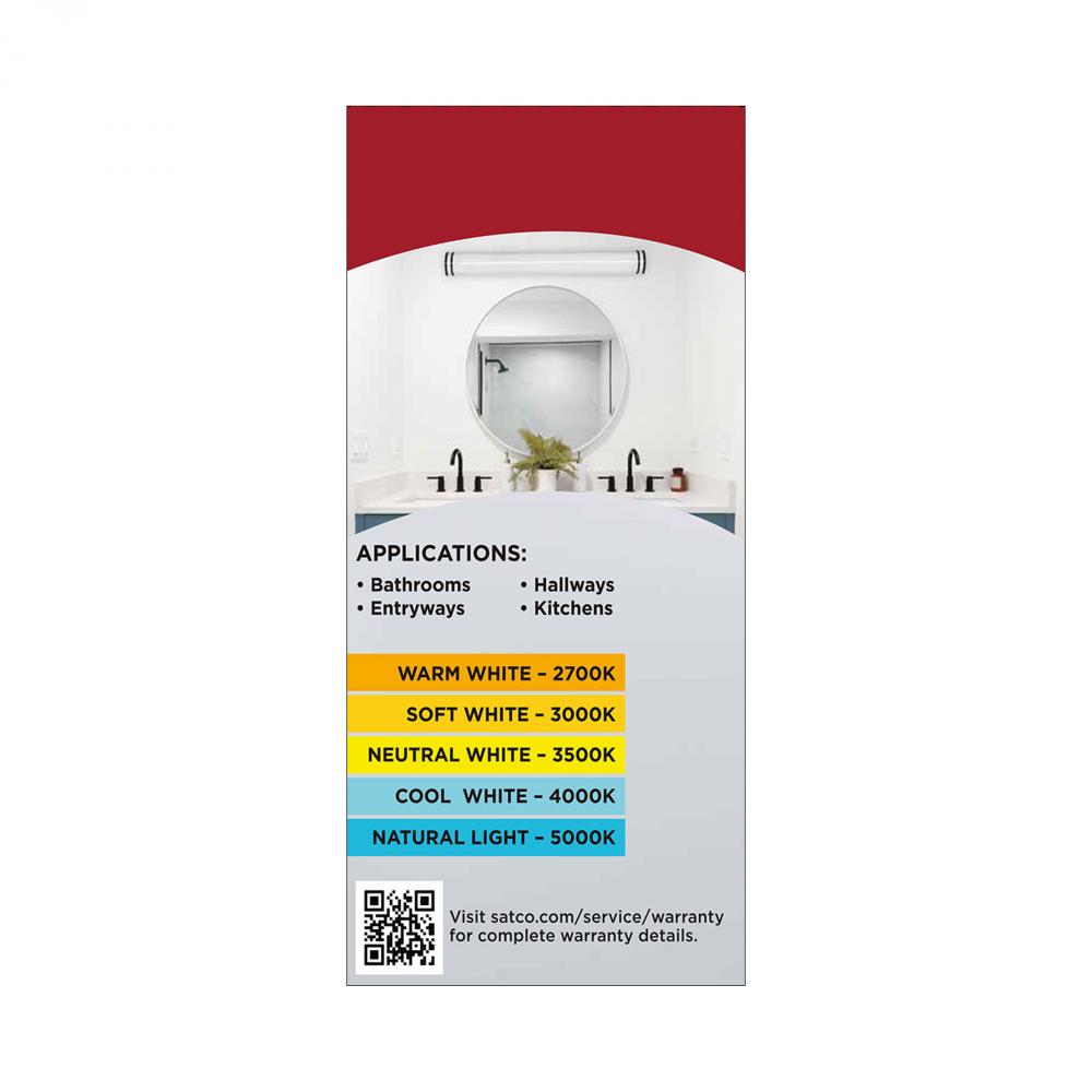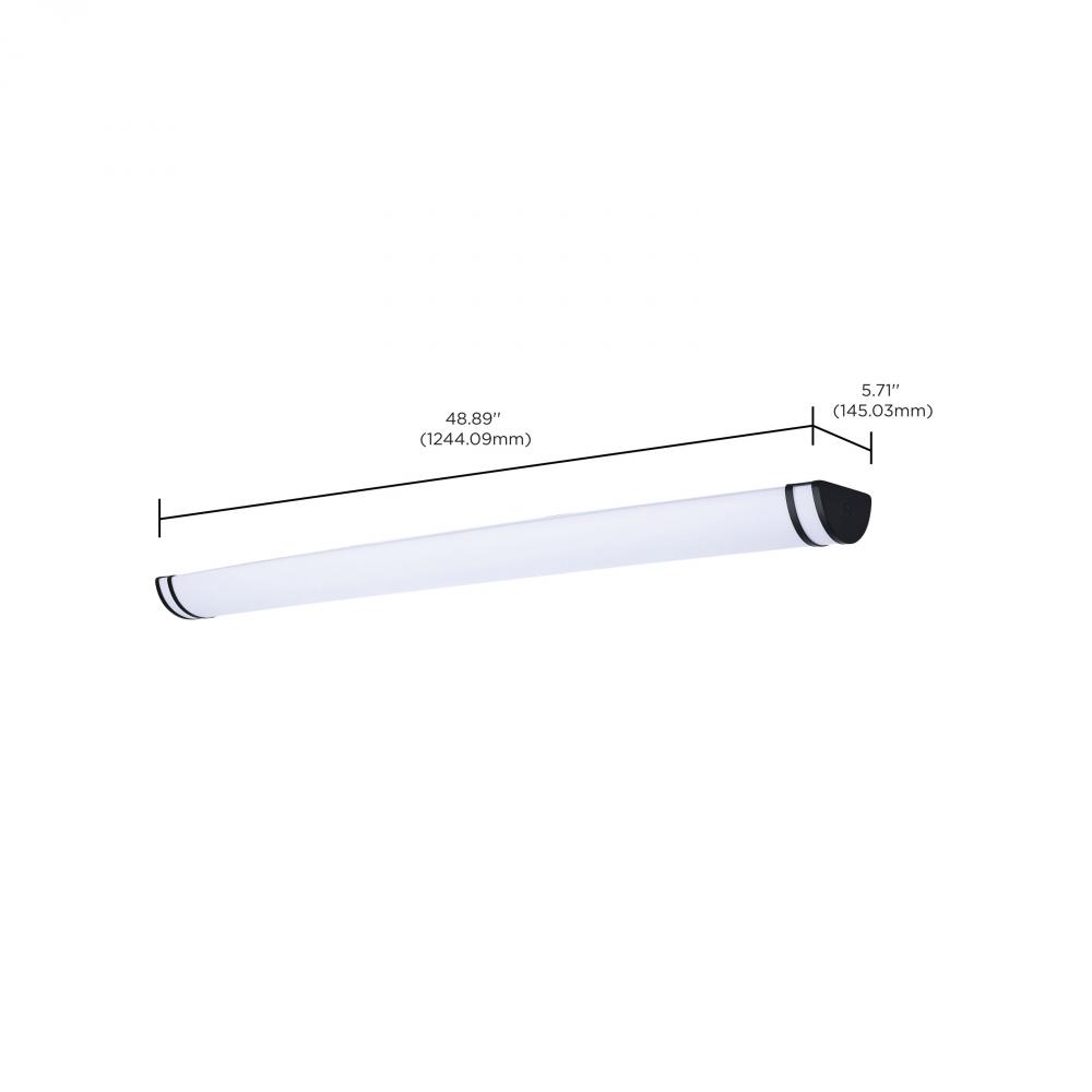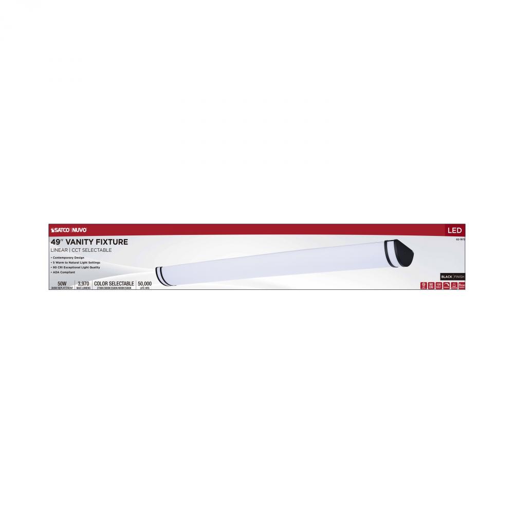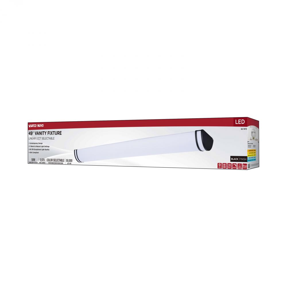 The SATCO NUVO 62-1972 Glamour 49-inch Vanity Fixture in white with a black finish combines sleek design with 5 CCT selectable technology (2700K–5000K) and 90 CRI illumination for superior color rendering. This 50-watt fixture replaces 300W incandes