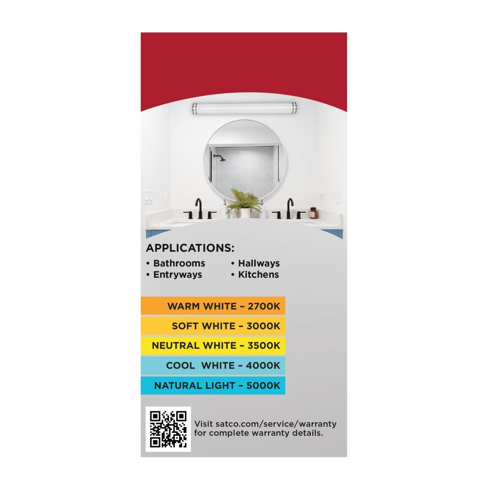 The SATCO NUVO Glamour and Crispo LED collections offer sleek, sophisticated lighting with 5 CCT selectable technology (2700K–5000K) and 90 CRI illumination. The Crispo Collection, available in White, includes 25-inch and 49-inch vanity fixtures and