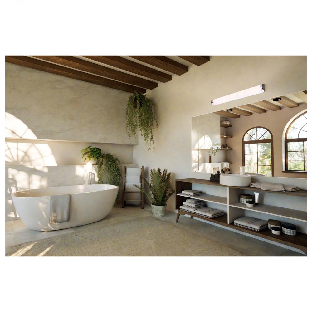 The SATCO NUVO Glamour and Crispo LED collections offer sleek, sophisticated lighting with 5 CCT selectable technology (2700K–5000K) and 90 CRI illumination. The Crispo Collection, available in White, includes 25-inch and 49-inch vanity fixtures and