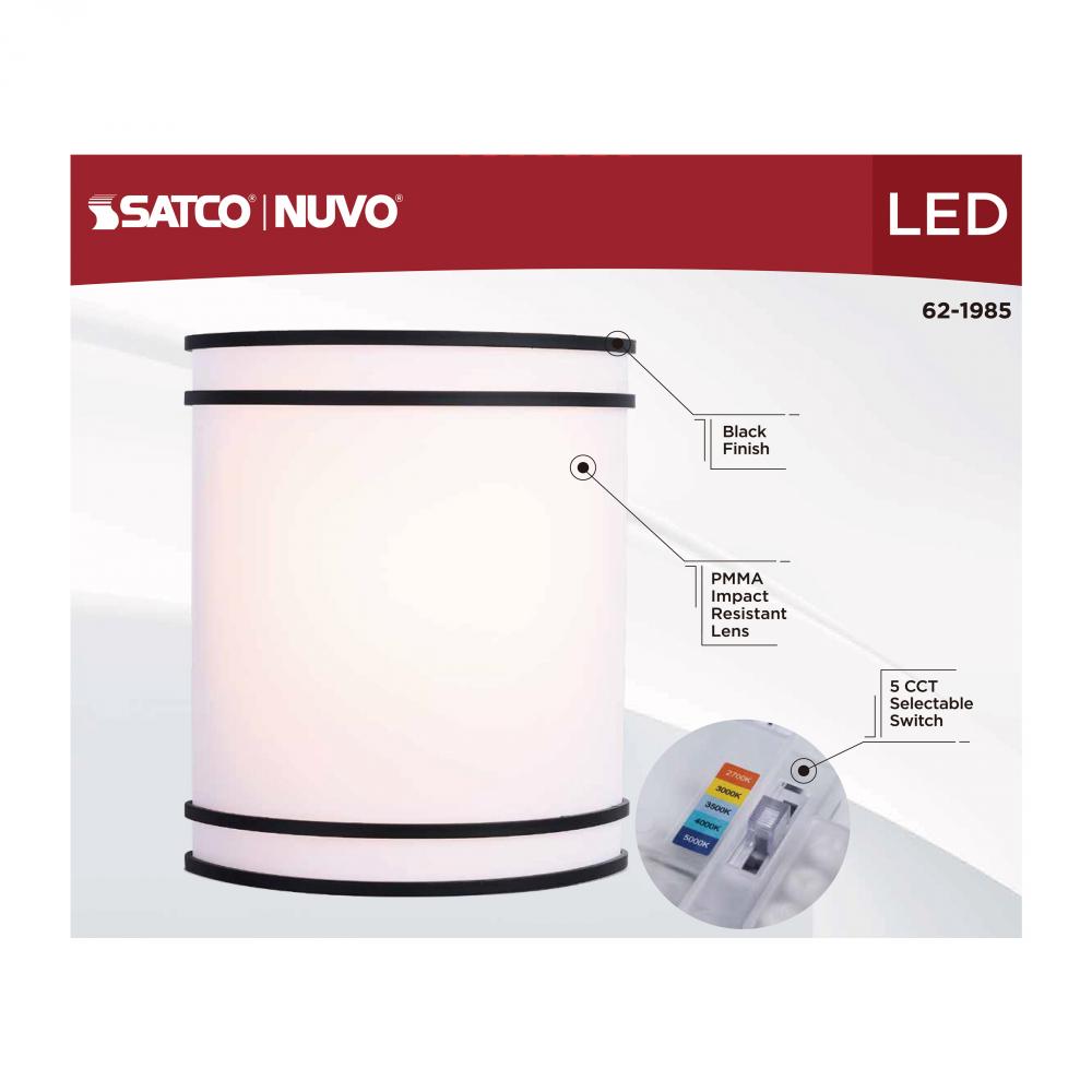 The SATCO NUVO 62-1985 Glamour Wall Sconce in white with a black finish delivers sleek, modern lighting with 5 CCT selectable technology (2700K–5000K) and 90 CRI illumination for vibrant color rendering. This 10-watt fixture replaces 80W incandescen