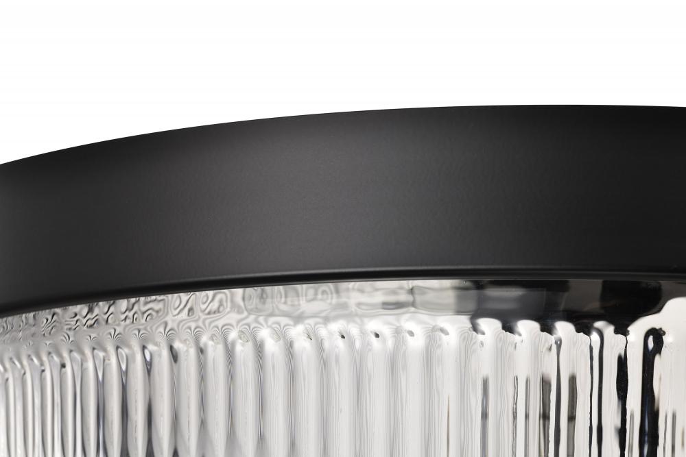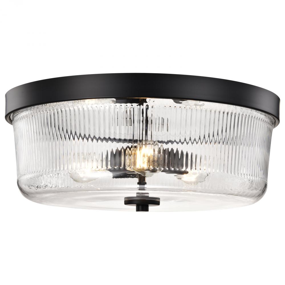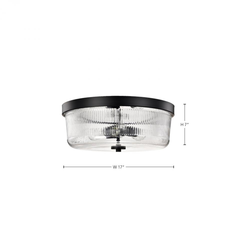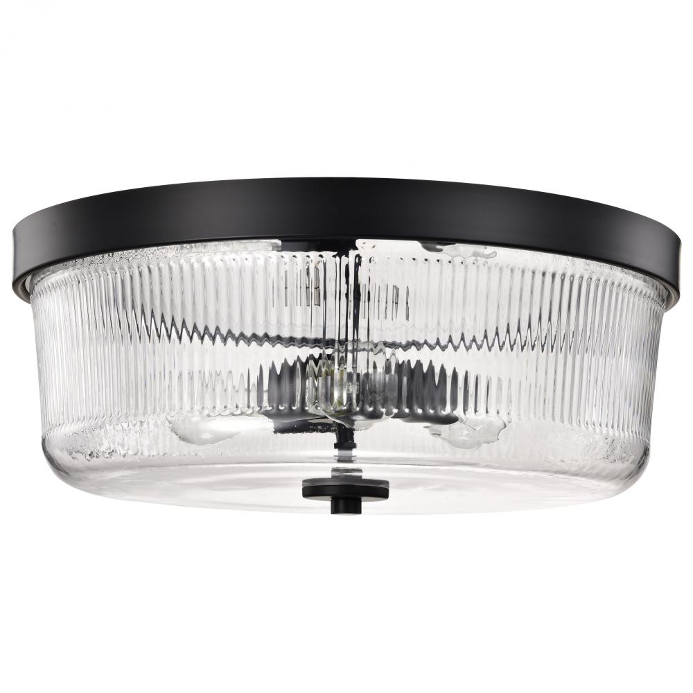 Grayson; Large Flush Mount; Matte Black Finish; Clear Ribbed Glass