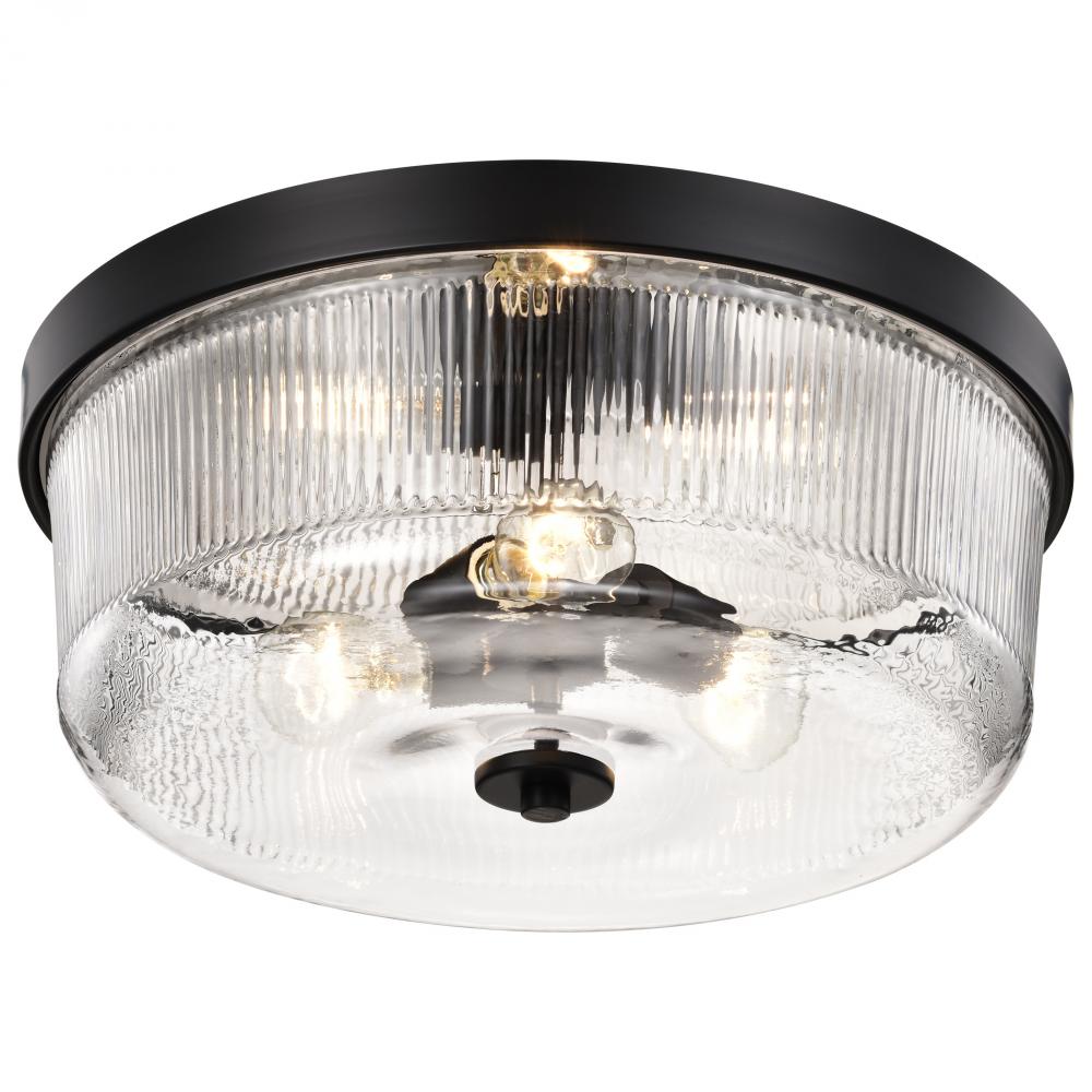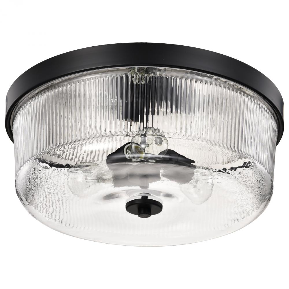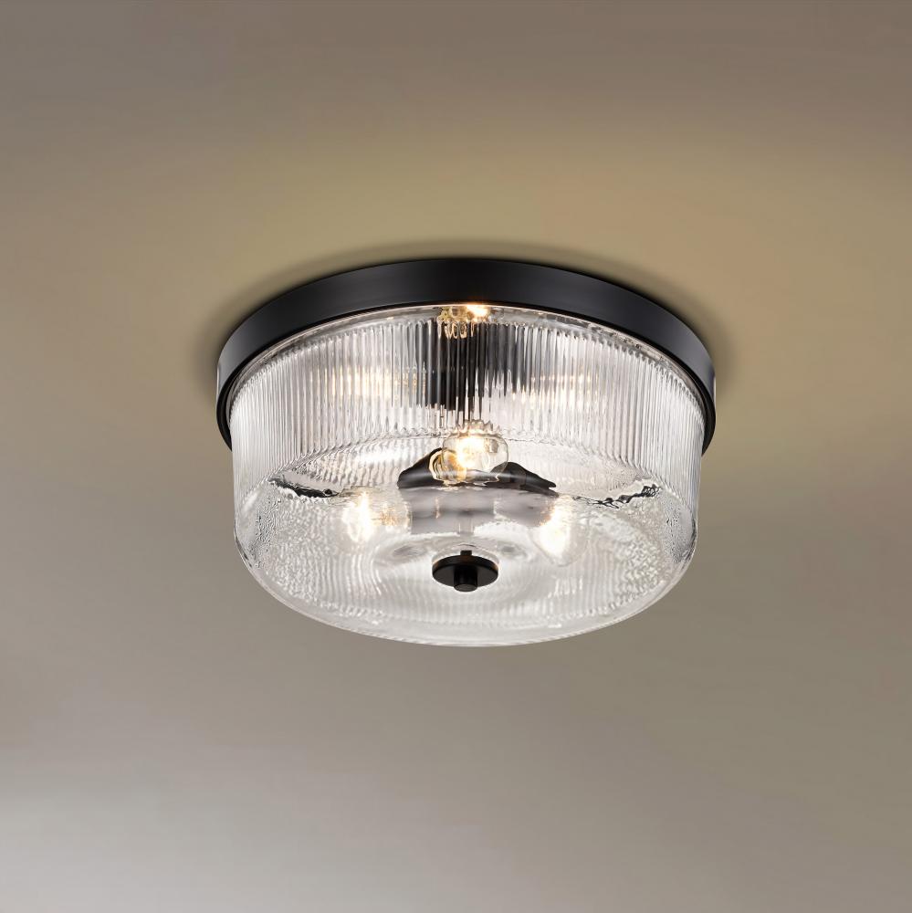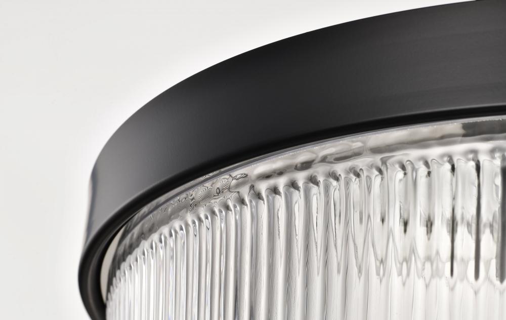 Grayson; Large Flush Mount; Matte Black Finish; Clear Ribbed Glass