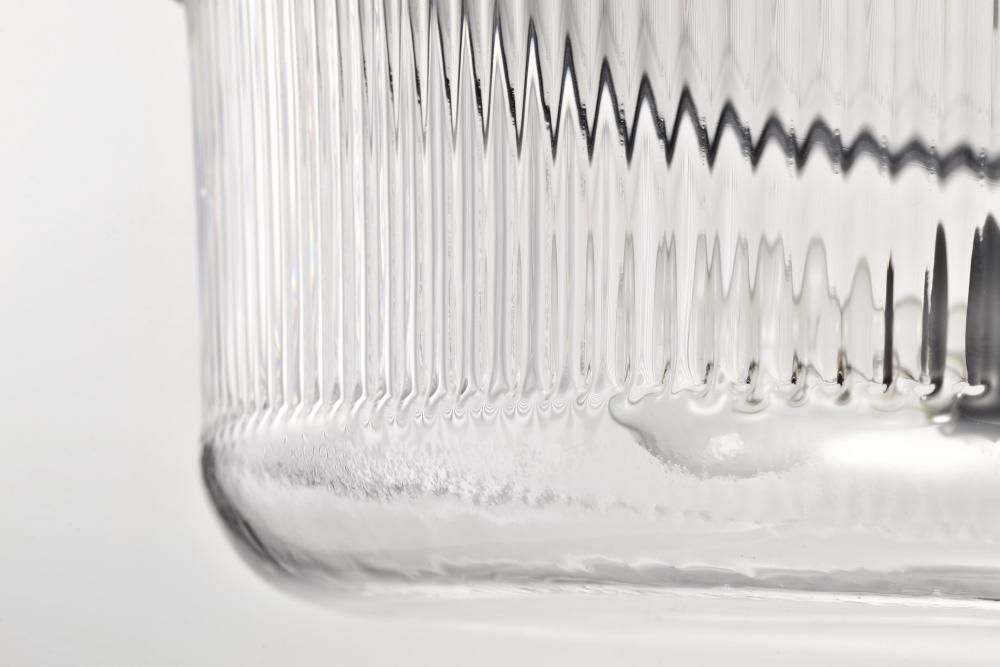 Finished in Matte Black with Clear Ribbed Glass