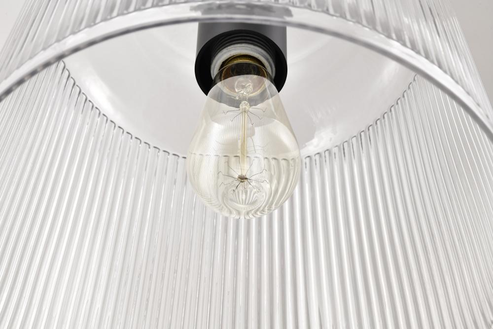 Grayson; Large Pendant; Matte Black Finish; Clear Ribbed Glass