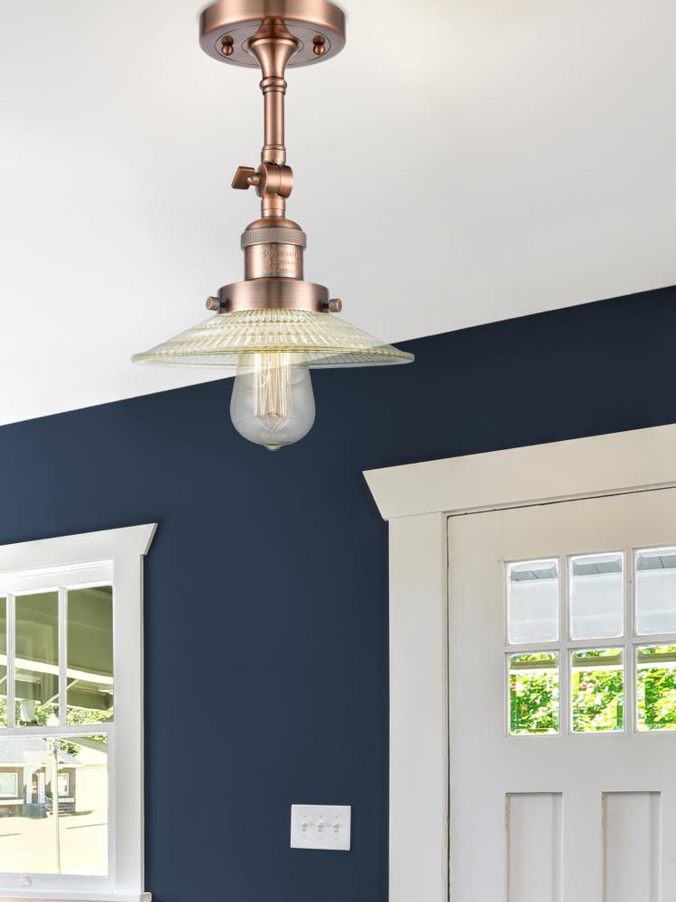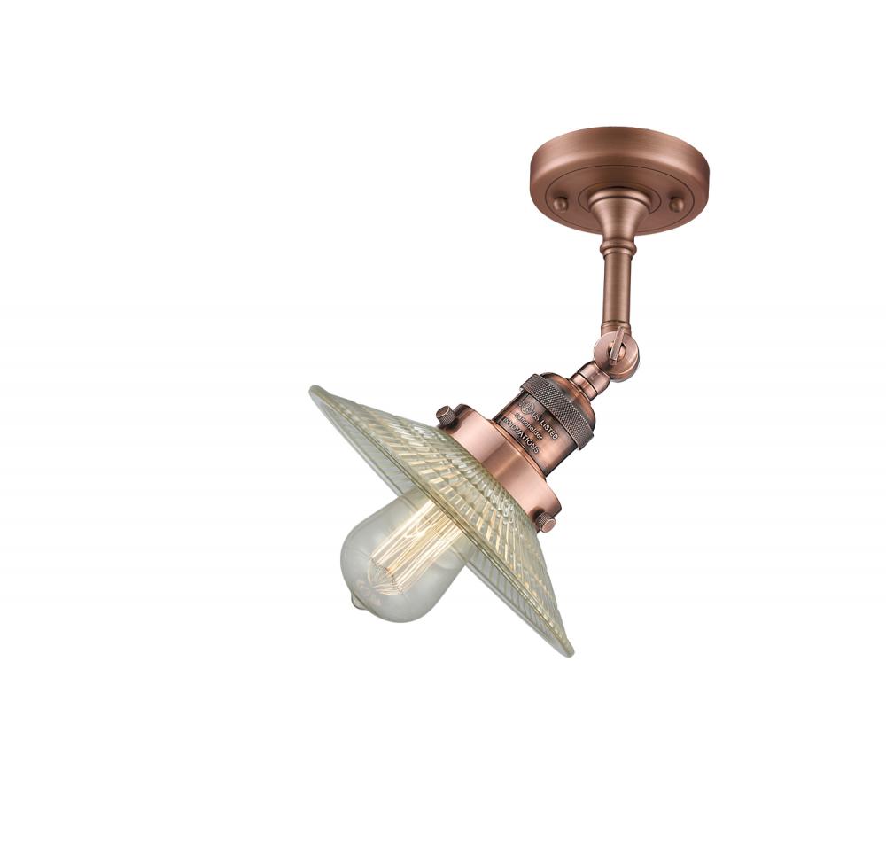 Halophane - 1 Light - 9 inch - Antique Copper - Clear Halophane Shade - Adjustable Semi-Flush Mount