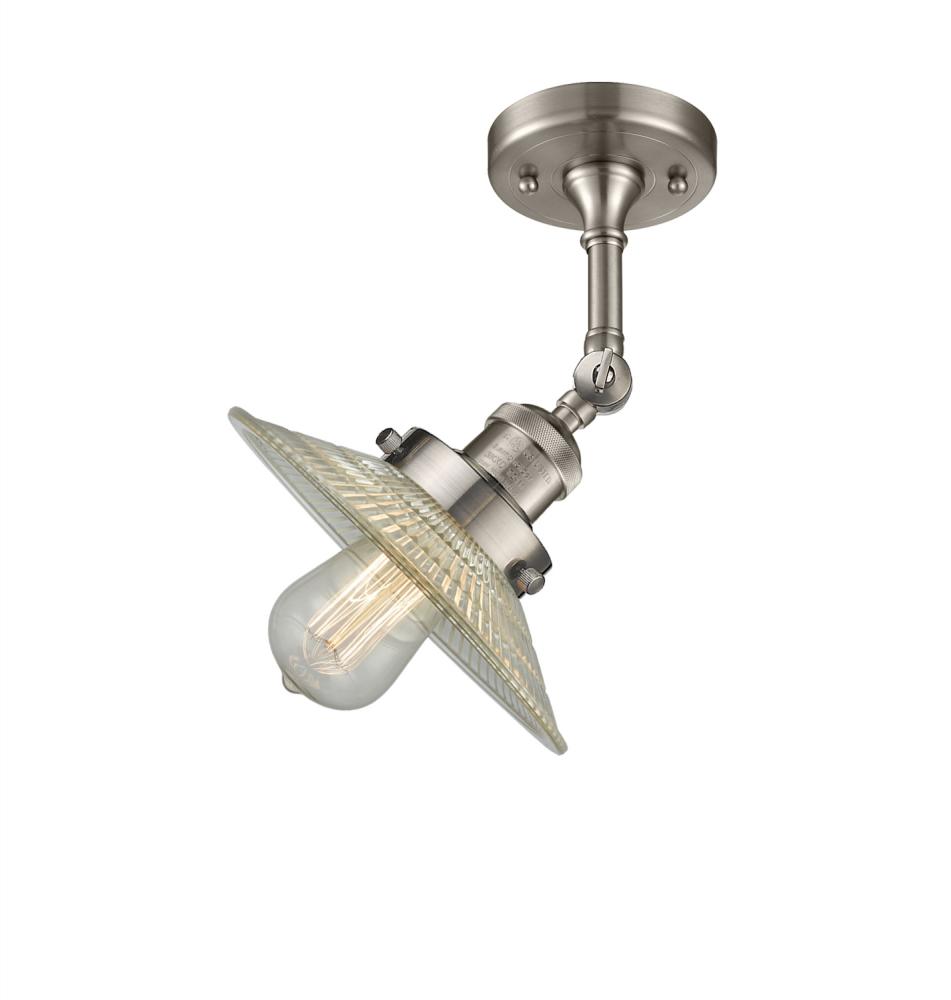 Halophane - 1 Light - 9 inch - Brushed Satin Nickel - Clear Halophane Shade - Adjustable Semi-Flush Mount