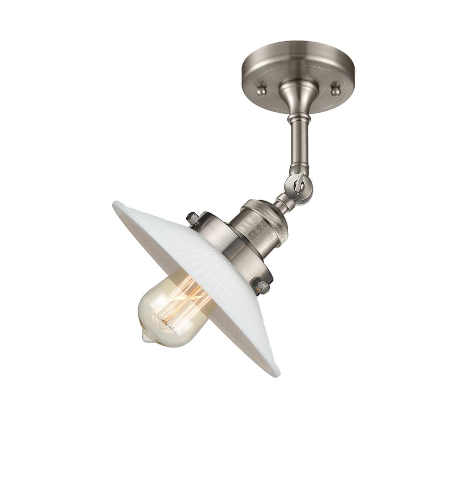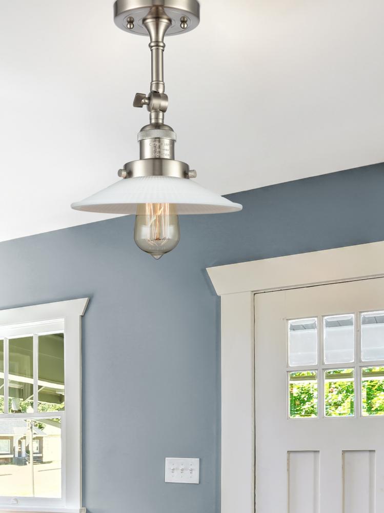 Halophane - 1 Light - 9 inch - Brushed Satin Nickel - Matte White Halophane Shade - Adjustable Semi-Flush Mount