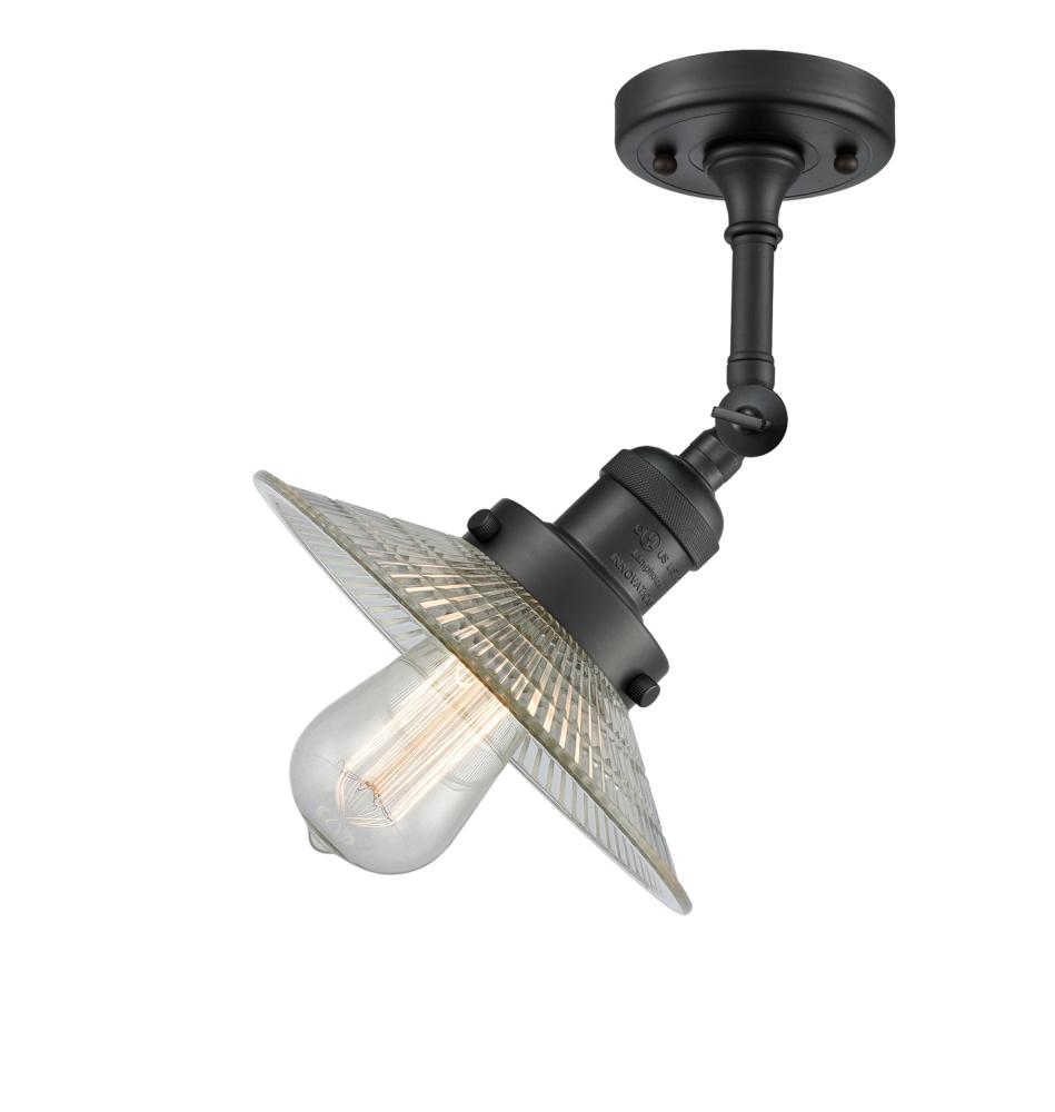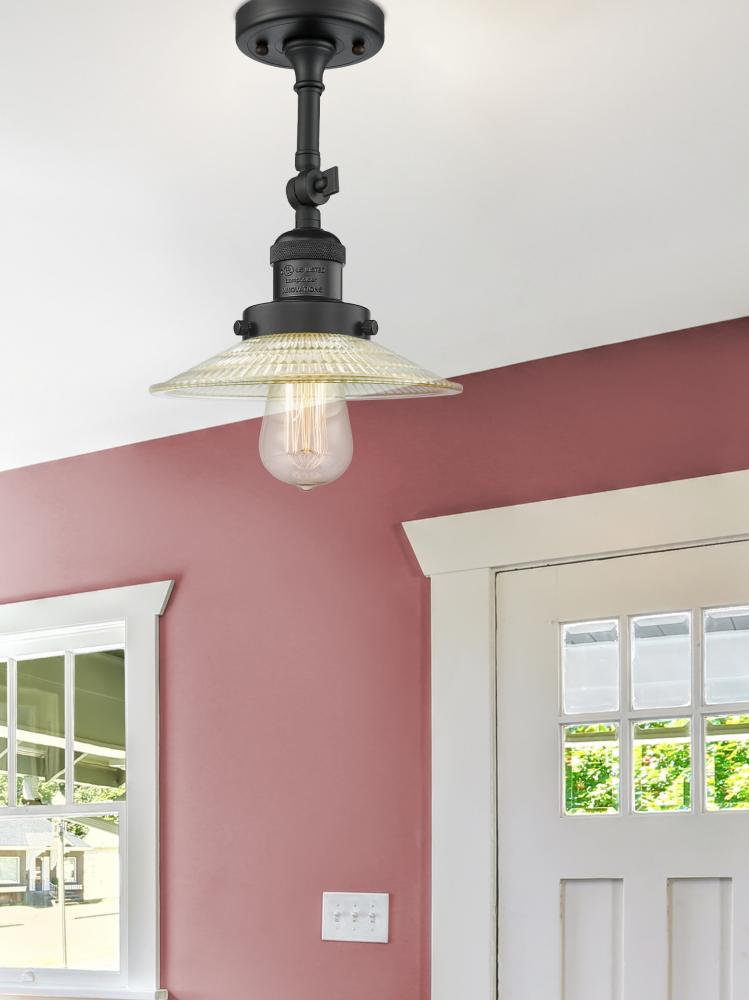 Halophane - 1 Light - 9 inch - Matte Black - Clear Halophane Shade - Adjustable Semi-Flush Mount