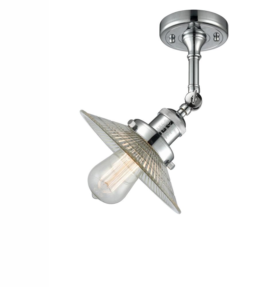 Halophane - 1 Light - 9 inch - Polished Chrome - Clear Halophane Shade - Adjustable Semi-Flush Mount