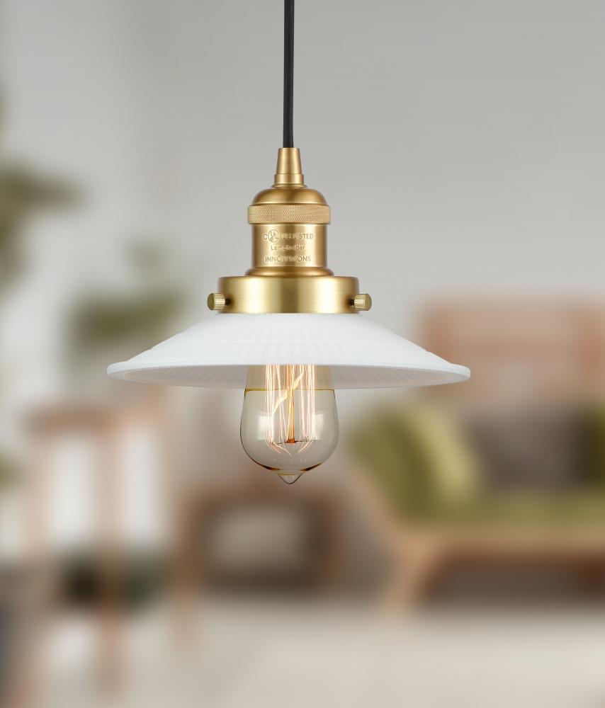 Halophane - 1 Light - 9 inch - Satin Gold - Matte White Halophane Shade - Cord hung - Mini Pendant