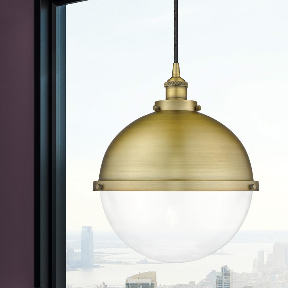 Hampden - 1 Light - 13 inch - Brushed Brass - Brushed Brass Hampden 12" with Clear glass Shade - Cord hung - Pendant