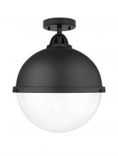 Hampden - 1 Light - 13 inch - Brushed Satin Nickel - Brushed Satin Nickel Hampden 12" with Clear glass Shade - Semi-Flush Mount