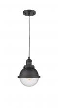Hampden - 1 Light - 7 inch - Black Antique Brass - Matte Black Hampden 6" with Clear glass Shade - Cord hung - Mini Pendant