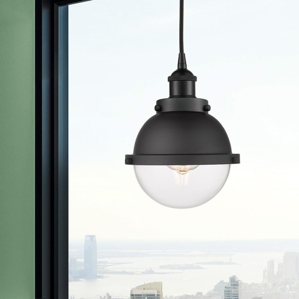 Hampden - 1 Light - 7 inch - Matte Black - Matte Black Hampden 6" with Clear glass Shade - Cord hung - Mini Pendant