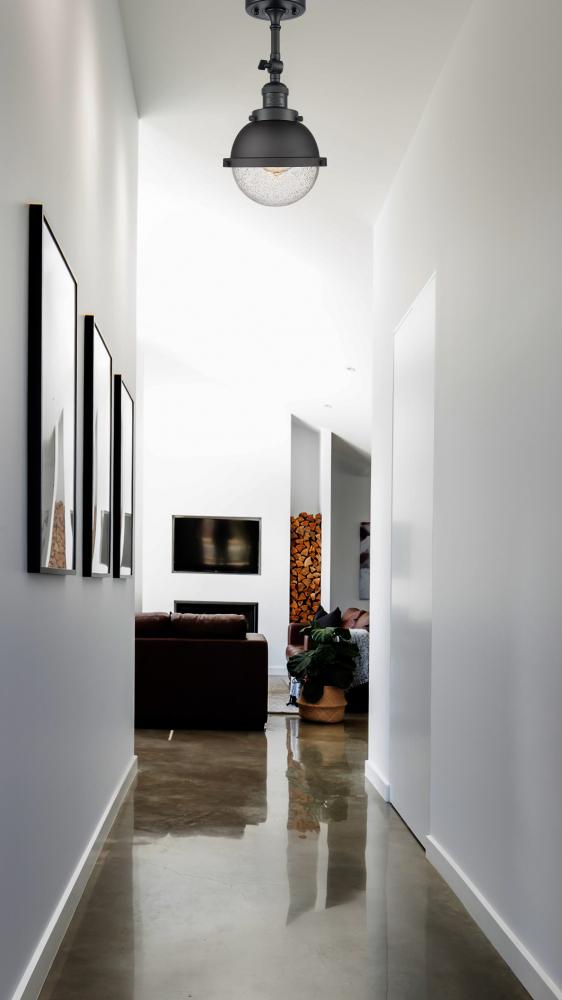 Hampden - 1 Light - 7 inch - Matte Black - Matte Black Hampden 6" with Seedy glass Shade - Semi-Flush Mount