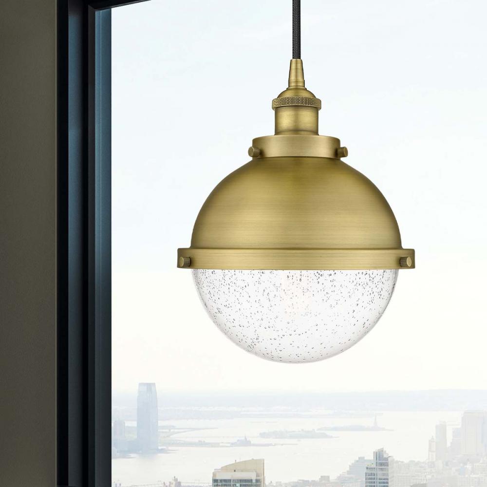 Hampden - 1 Light - 9 inch - Brushed Brass - Brushed Brass Hampden 8" with Seedy glass Shade - Cord hung - Mini Pendant