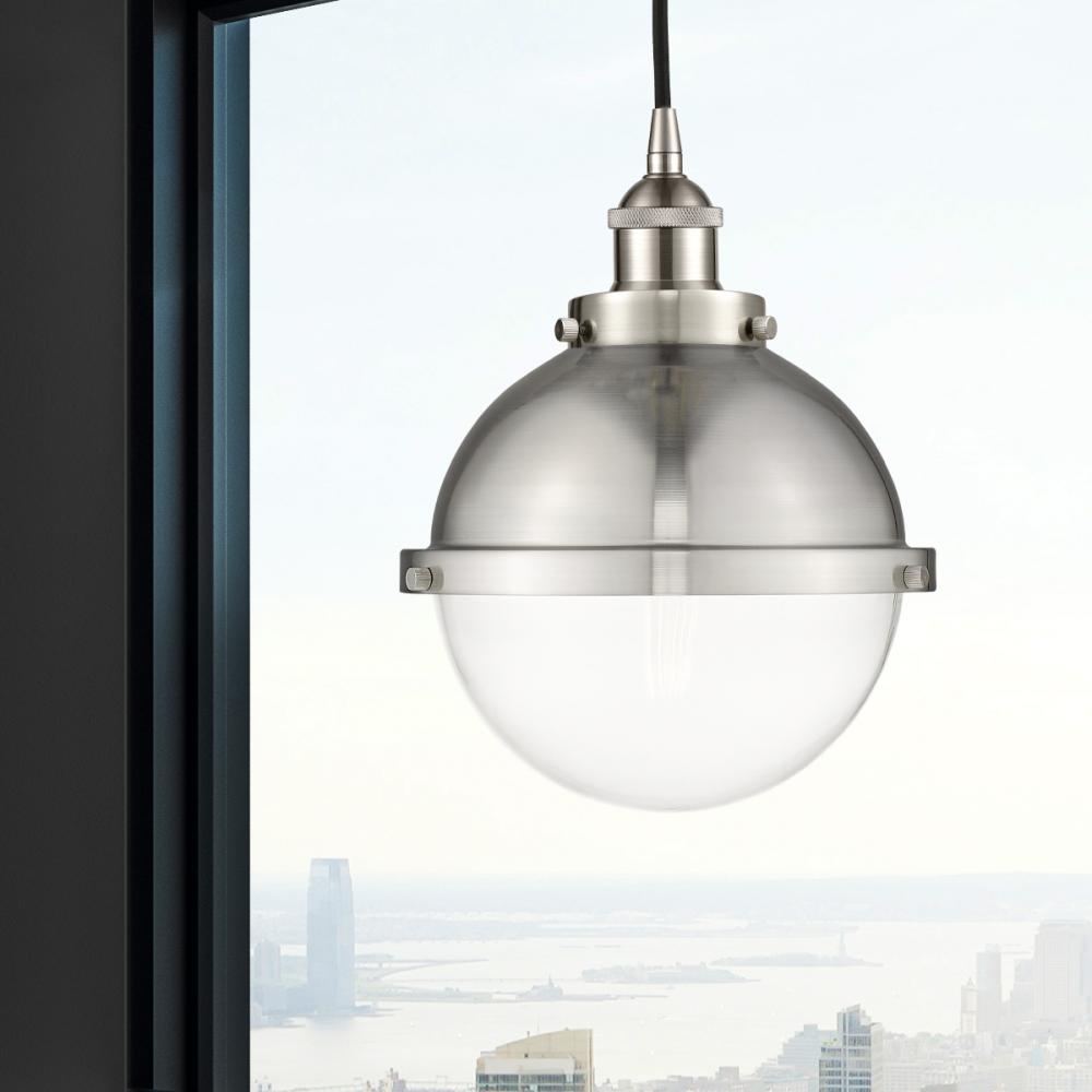 Hampden - 1 Light - 9 inch - Brushed Satin Nickel - Brushed Satin Nickel Hampden 8" with Clear glass Shade - Cord hung - Mini Pendant