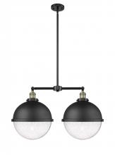 Hampden - 2 Light - 18 inch - Brushed Brass - Brushed Brass Hampden 12" with Clear glass Shade - Stem Hung - Island Light