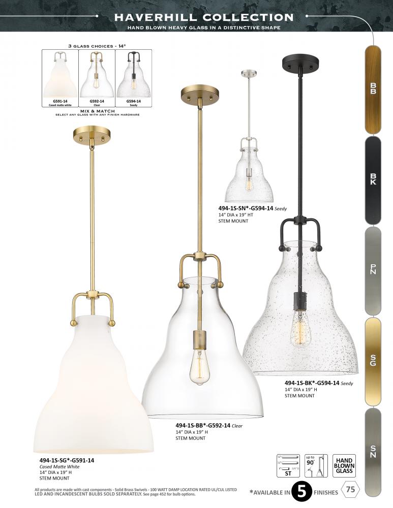 If soft elegance with an industrial touch is what you're looking for then the Haverhill Collection is for you. The unique bell shaped shade is made of hand blown glass that delivers a warm and airy feel with its graceful lines.