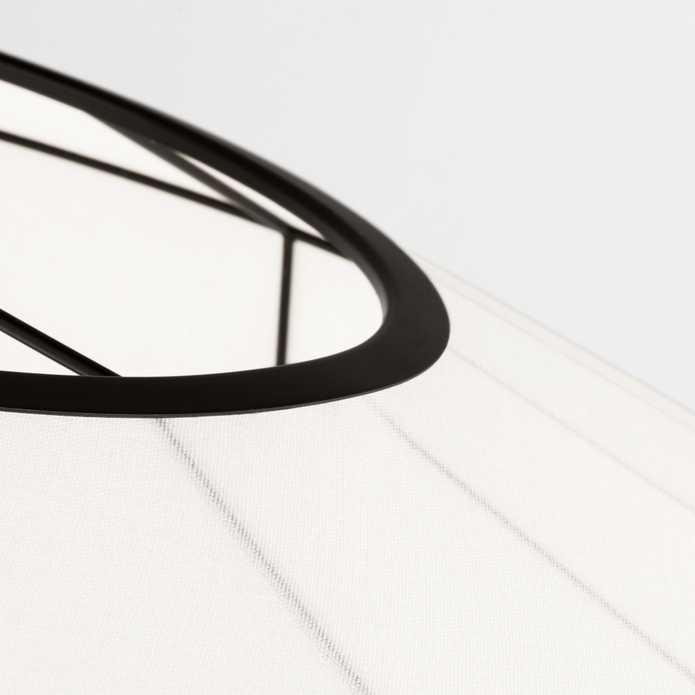Showcasing multifaceted geometry, the Hikari series by Ellen DeGeneres is inspired by her personal collection of sculptural lighting. Grounded by the contrast of hard and soft materials, the aged iron and white linen fixture radiates soft, diffused light. The Hikari pendant can be used in a dining room, living room, bedroom or entryway.