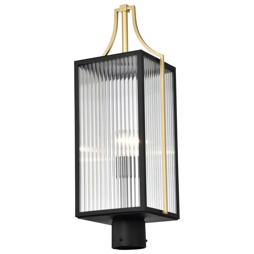 Holden; Outdoor Post Lantern; Gold and Black Finish; Clear Glass