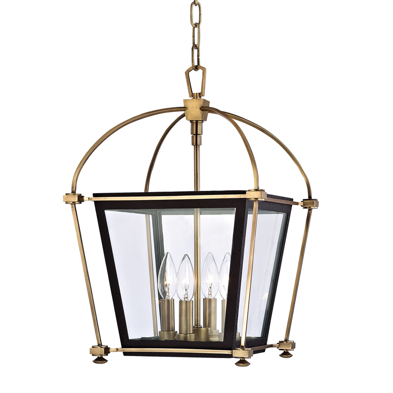 Couching a candelabra in a glass lantern, then strengthening the piece with a metal surround, Hollis hearkens back to a classic lighting design while finding a way to make it feel new.