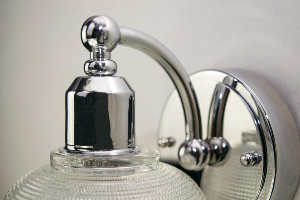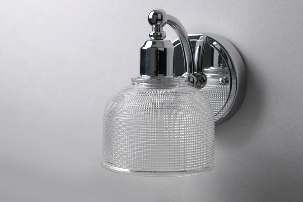 Crisp and clean define this new collection with Polished Chrome frames and Clear, prismatic shades. The geometric pattern of the glass diffuses the glare while providing ample light.