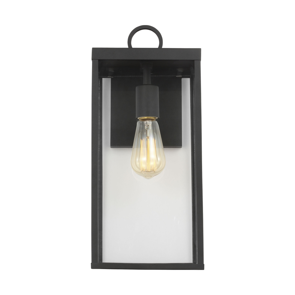 The Drew & Jonathan Howell Outdoor series infuses classic design with clean, contemporary lines. The frame is crafted from weather-resistant aluminum in an Antique Bronze or Textured Black finish for an industrial appeal and a ring detail to complement the design. Inside, Howell features an open bulb base that aims the light out over your space from a single light bulb (sold separately). Clear and opal etched glass ship with this fixture for a more customized look.