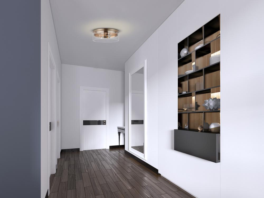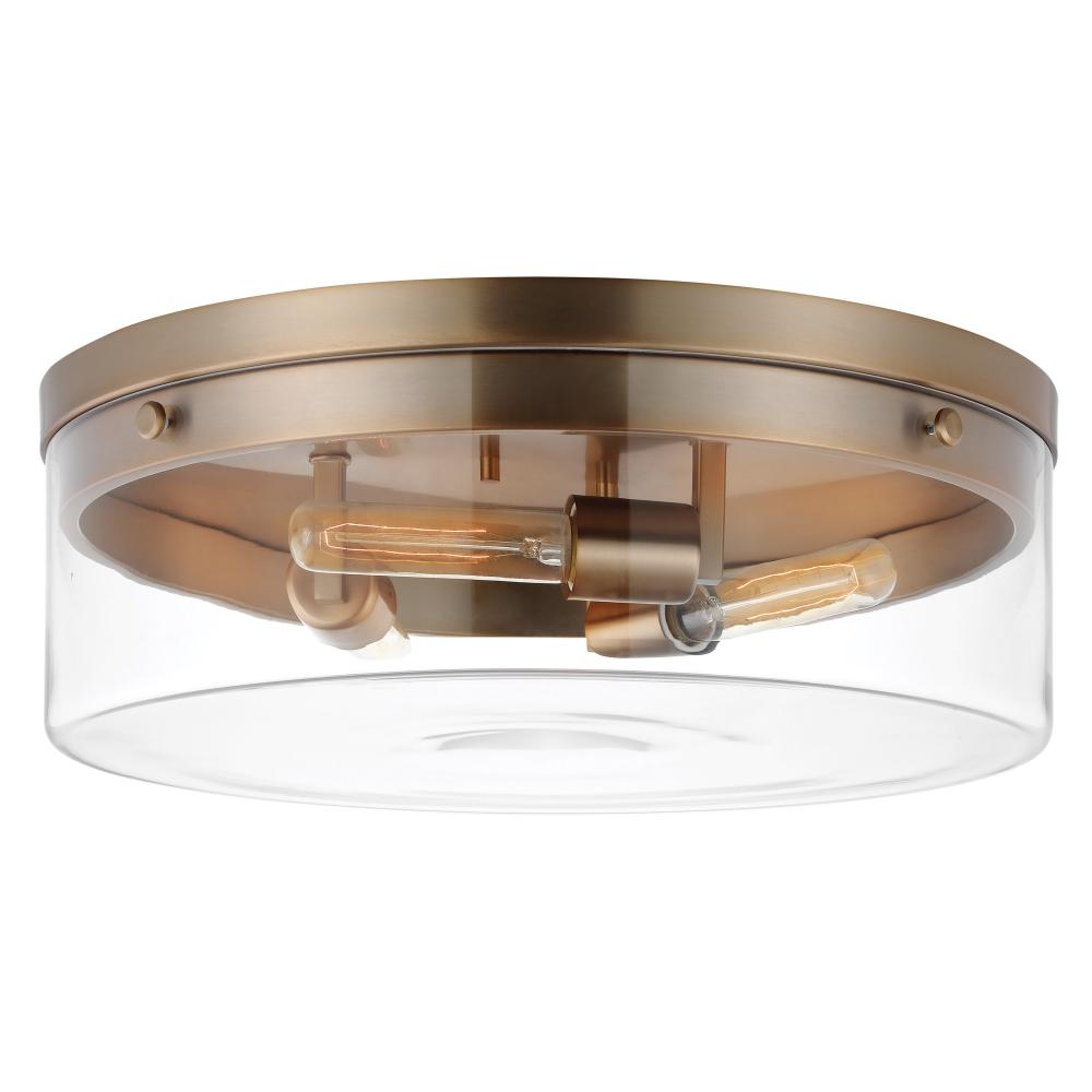 Intersection; Large Flush Mount Fixture; Burnished Brass with Clear Glass