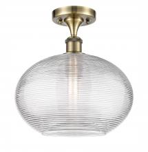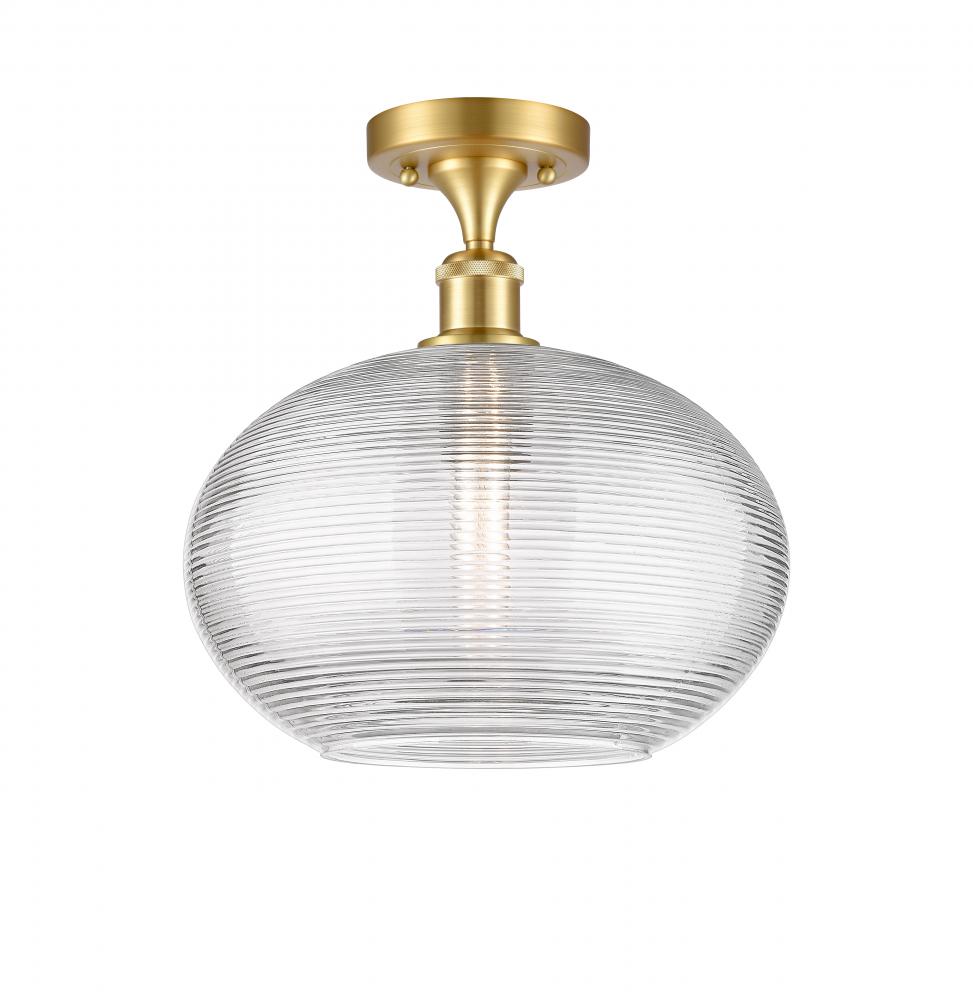 Ithaca - 1 Light - 12 inch - Satin Gold - Clear Ithaca Shade - Semi-Flush Mount