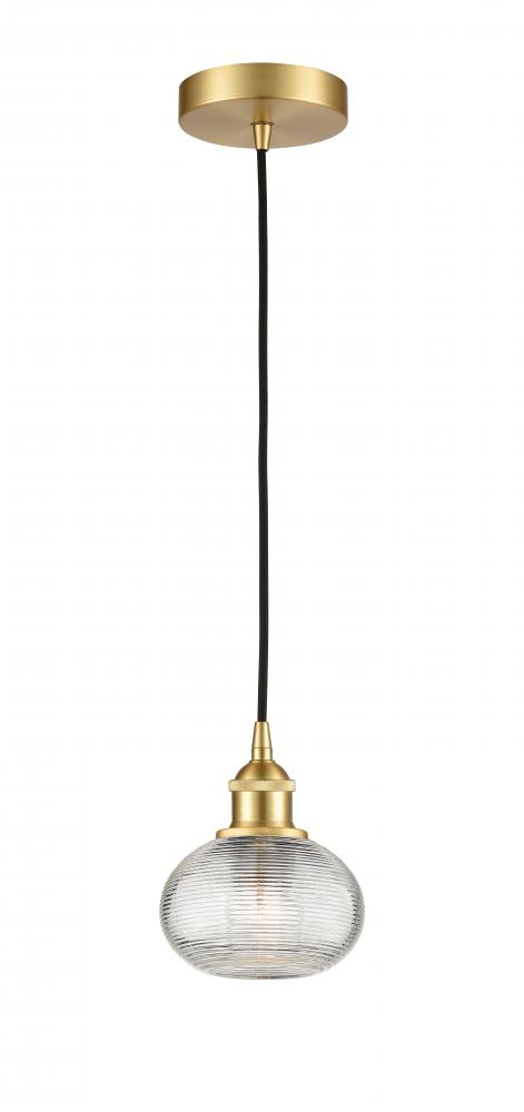 Ithaca - 1 Light - 6 inch - Satin Gold - Clear Ithaca Shade - Cord hung - Mini Pendant