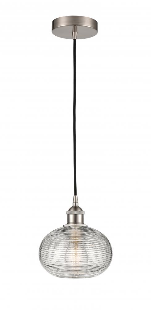 Ithaca - 1 Light - 8 inch - Brushed Satin Nickel - Clear Ithaca Shade - Cord hung - Mini Pendant