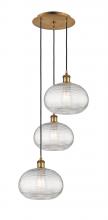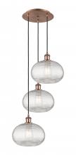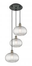 Ithaca - 3 Light - 17 inch - Matte Black - Clear Ithaca Shade - Cord hung - Multi Pendant