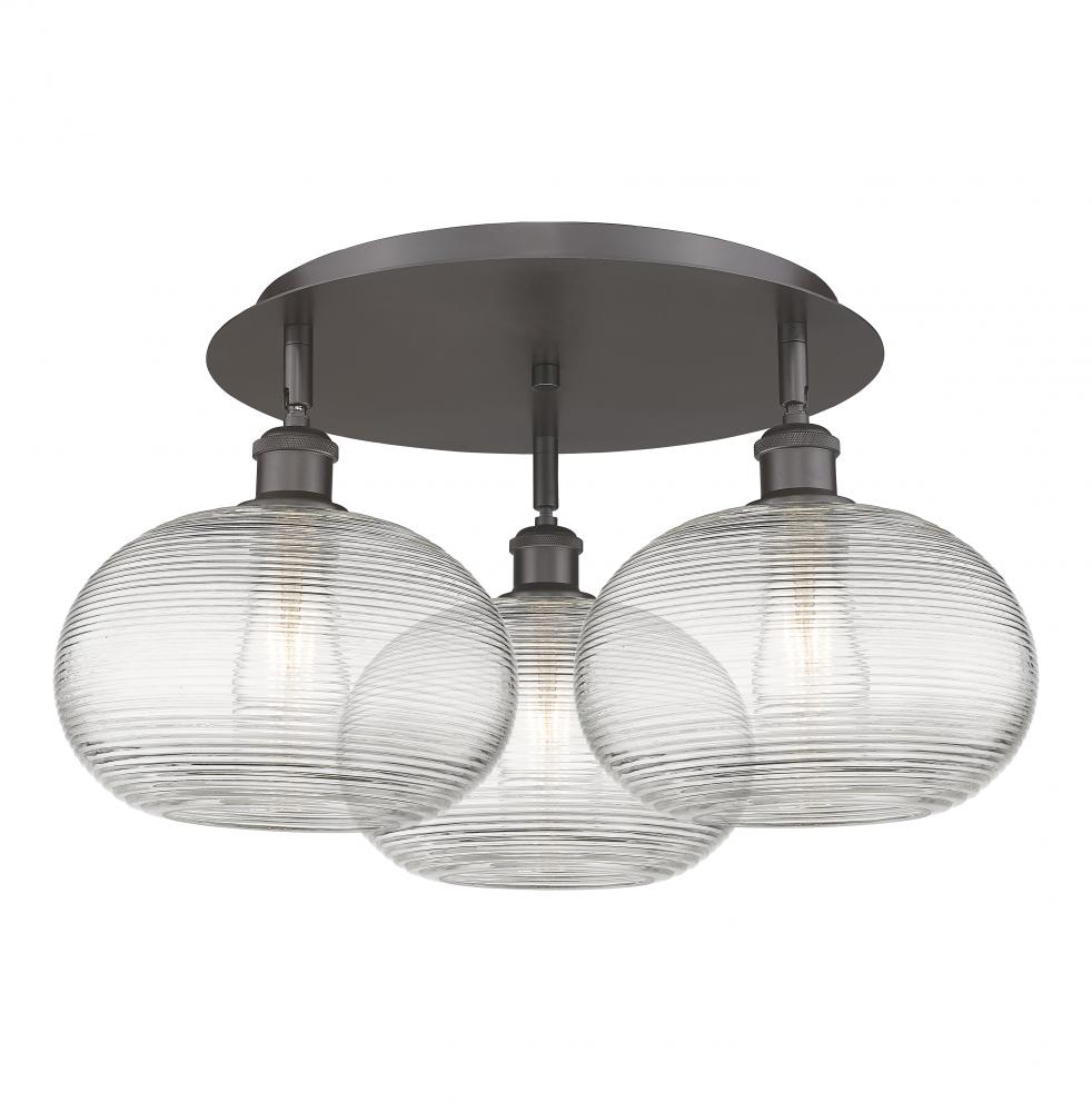Ithaca - 3 Light - 22 inch - Oil Rubbed Bronze - Clear Ithaca Shade - Flush Mount