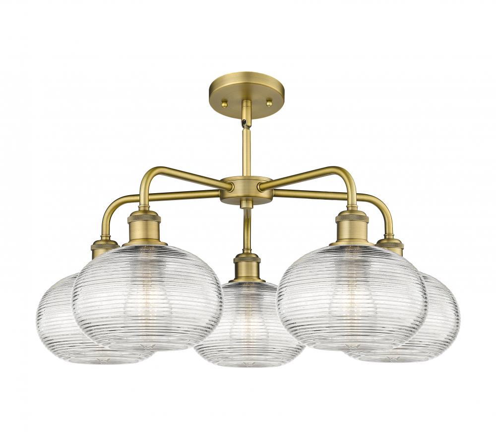 Ithaca - 5 Light - 26 inch - Brushed Brass - Clear Ithaca Shade - Chandelier