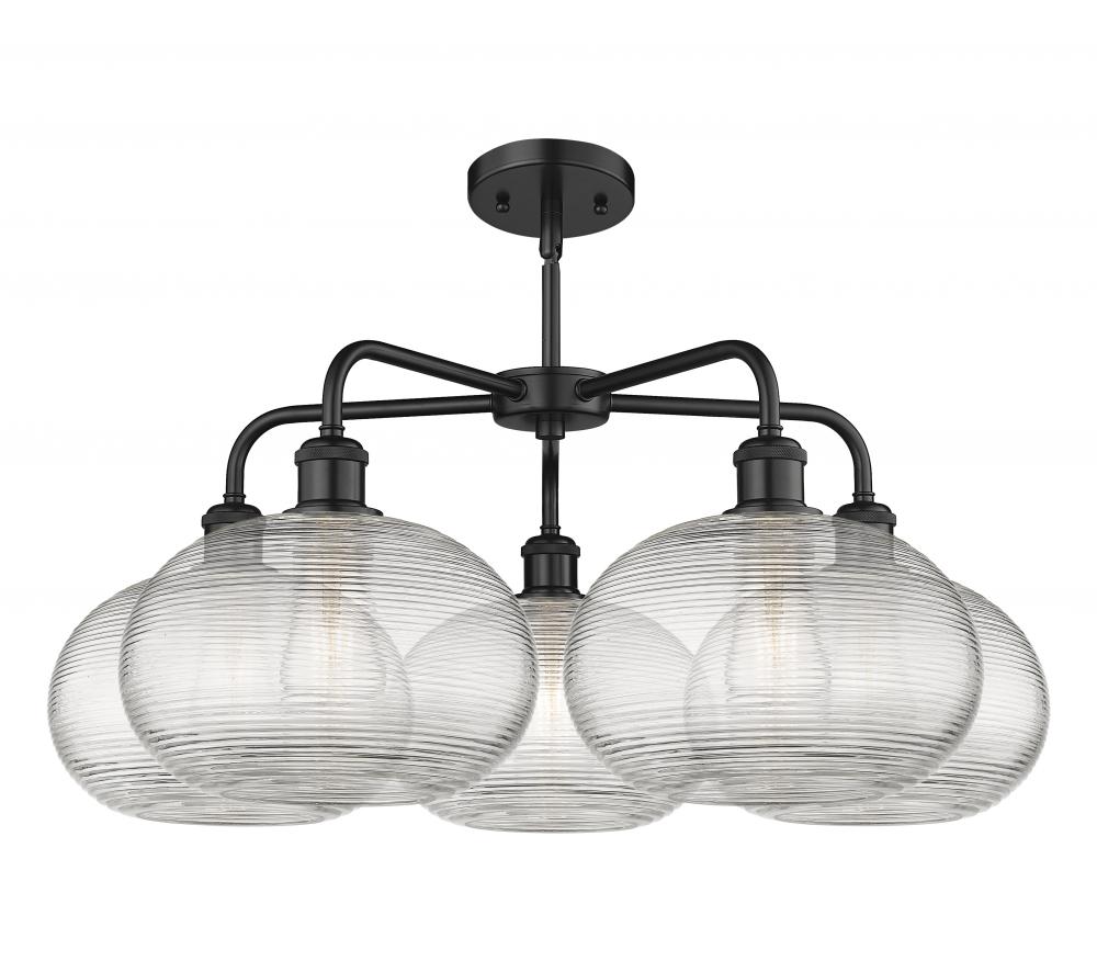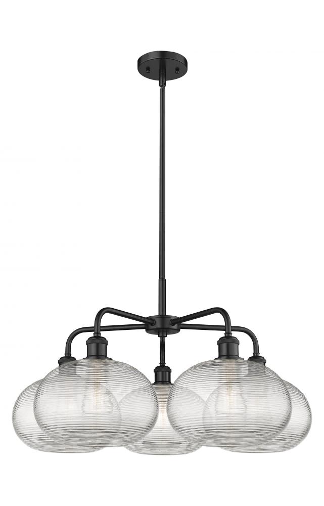 Ithaca - 5 Light - 28 inch - Matte Black - Clear Ithaca Shade - Chandelier